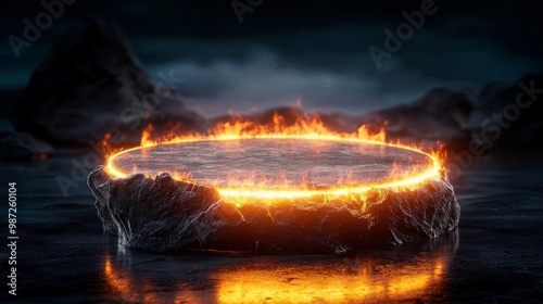 Fototapeta premium A rock podium with fire effects for a dramatic performance