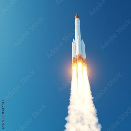 © MetaKibo, Obraz premium A rocket launching into the sky, showcasing the power of space exploration.