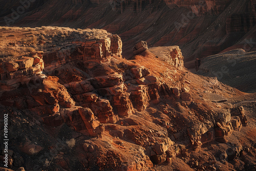 © mila103, Obraz premium A rocky hillside with a sunset in the background