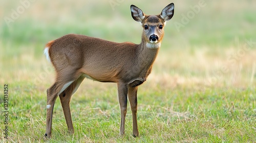 © Turab, Fototapeta premium A roe deer (Capreolus capreolus) looking at the camera on grass in morning mist.