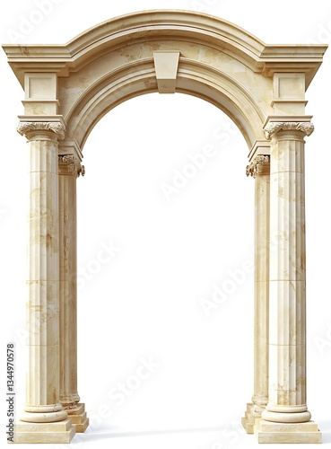 © Lilimanatasa, Naklejka premium A Roman archway made of marble, white background