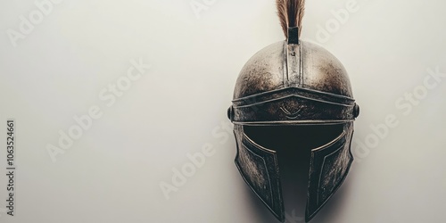 © Ahmad, Obraz premium A Roman gladiator helmet set against a clean white backdrop. This helmet represents the fierce warriors of ancient Rome, embodying strength and valor.