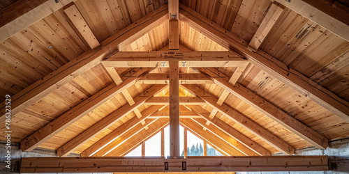 © Planetz, Obraz premium A roof truss structure made of light wood, home structure