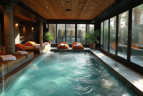 Obraz premium A room with a soaking tub inside a spa business