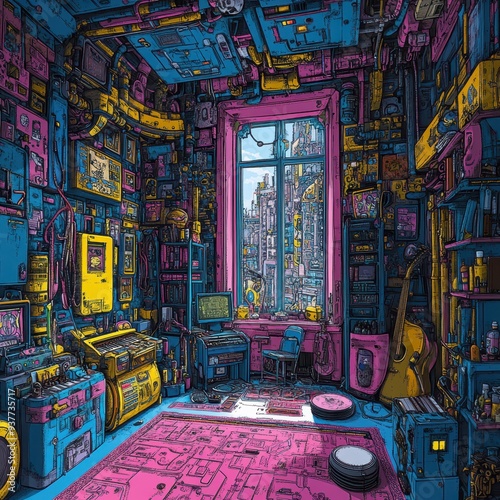 © cff999, Obraz premium a room with lots of colorful furniture and lots of stuff