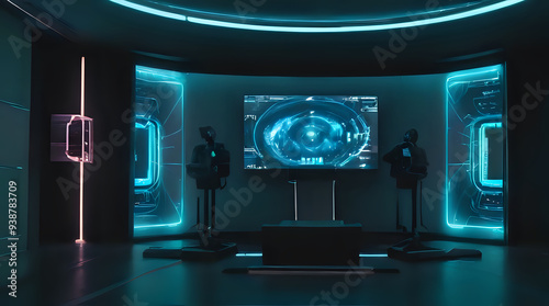 © Masum, Fototapeta premium a room with speakers and a projection screen in it