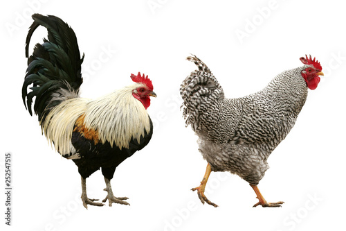 Fototapeta premium A rooster and a hen chicken isolated on white