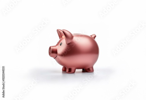 © YiuCheung, Obraz premium A rose gold piggy bank sits on a white background.