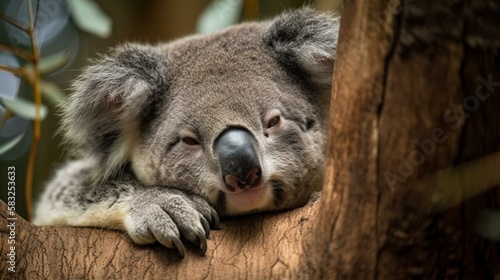 © Nataliya, Obraz premium A rotund koala snuggled up in a tree Generative AI