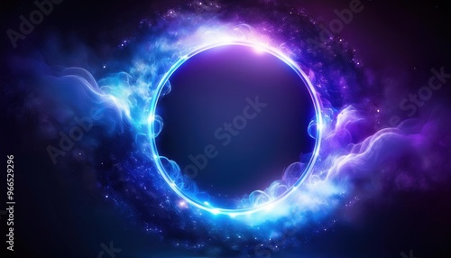 © Roman, Obraz premium A round frame with a glowing blue light inside