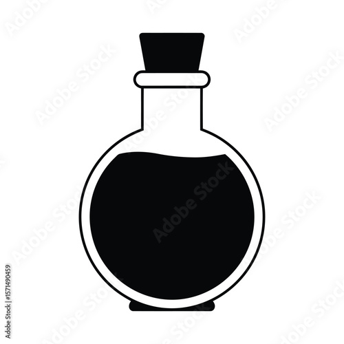 Obraz premium A round potion bottle with a cork, isolated on white background