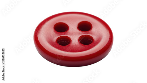 © Radianshots, Fototapeta premium A round red button with four holes lies flat against a smooth white background, highlighting its vibrant color