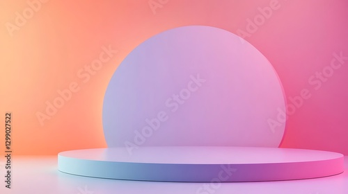 © Creative Design , Obraz premium a round white podium with a pink and blue light
