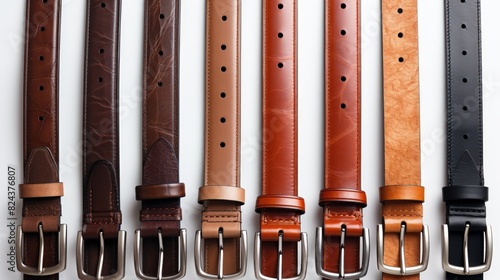 Fototapeta premium A row of belts with different colors and designs. The belts are made of...