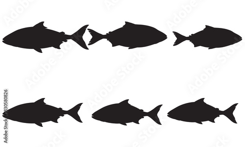 © Durjoy, Fototapeta premium A row of black fish silhouettes swimming in a line silhouette