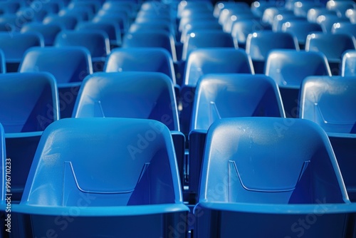 © kornc, Fototapeta premium A row of blue chairs are empty
