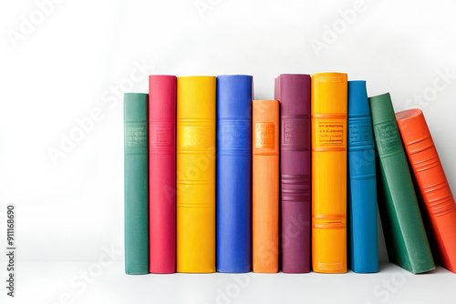 © Thunder, Naklejka premium A row of colorful books on white background,