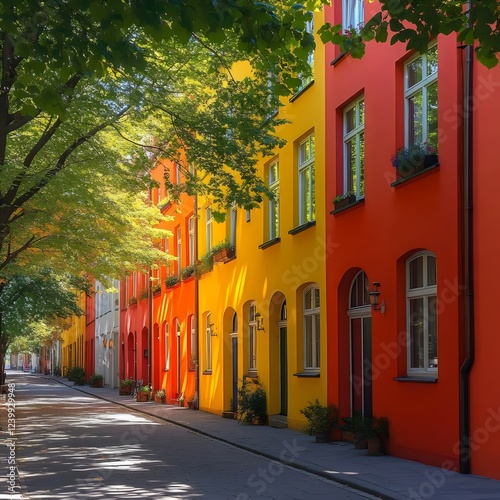 © Linus, Fototapeta premium A row of colorful buildings with a tree in the background