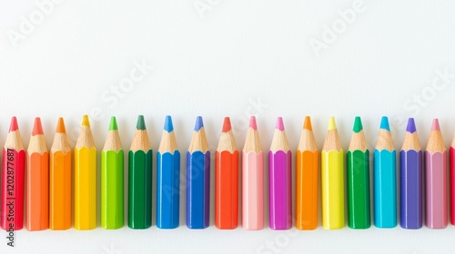 Fototapeta premium A row of colorful pencils arranged neatly on a white background.
