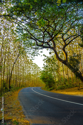 Fototapeta premium A row of dried trees on the side of the road in Kemlagi, Mojokerto, Indonesia.