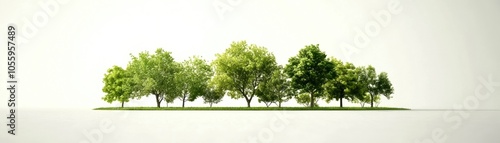 Obraz premium A row of lush green trees on a white isolated background.