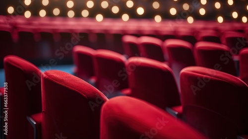 © Nanda, Obraz premium a row of red chairs in a cinema. Generative AI