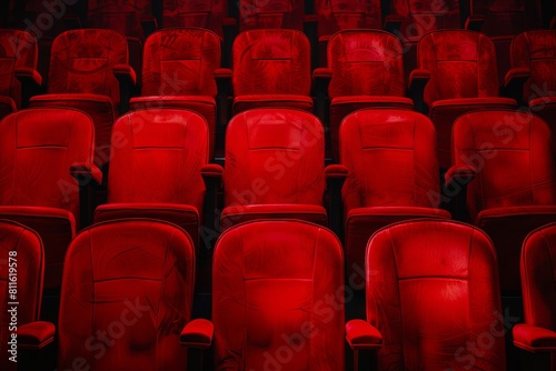 © VISUAL BACKGROUND, Obraz premium A row of red seats in a theater.