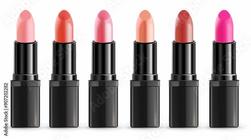 Obraz premium A row of six black lipsticks with different colors