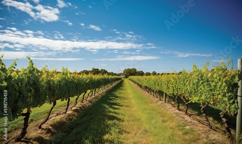 © Olga, Naklejka premium a row of trees in a field with a sky background. generative ai