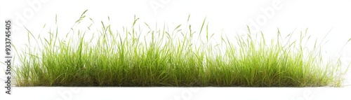 © KumCup, Obraz premium A row of vibrant green grass blades against a white background.