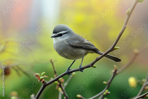 © ArtSpree, Obraz premium A ruby-crowned kinglet perched on a branch.. Beautiful simple AI generated image