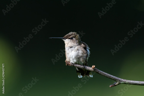 Obraz premium A Ruby-throated Hummingbird perched on a twig.