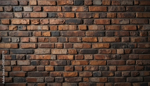 © Yurii, Obraz premium A rugged brick wall featuring a rich, textured pattern with warm brown hues, perfect for interior design, rustic backgrounds.