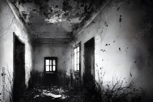 Obraz premium A ruined asylum, spooky and haunted.