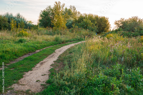 Obraz premium A rural path through the grass in summer.