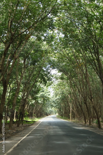 © MakeitEZ-Img&VID, Obraz premium A rural road flanked by rows of lush green trees