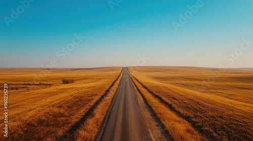 © Theeranan, Fototapeta premium A rural Russian road stretching into the horizon through endless fields.
