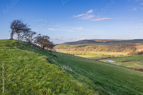 Obraz premium A rural South Downs view over the Cuckmere Valley, on a sunny spring day