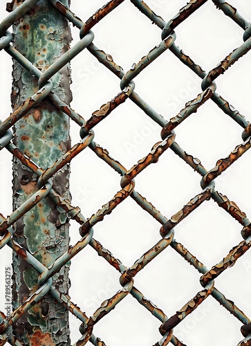 © antusher, Fototapeta premium A rusted metal fence with a twisted rope pattern. The fence is old and worn