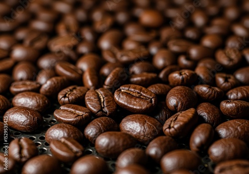 Fototapeta premium A rustic burlap sack filled with freshly roasted coffee beans spills onto a...