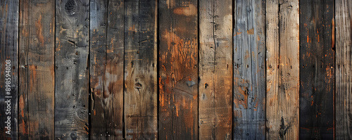 Naklejka premium A rustic wooden backdrop with weathered planks and natural textures, ideal for a warm and inviting feel.