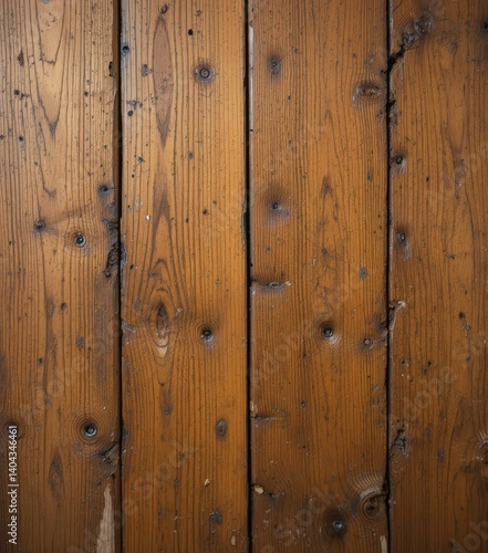 Fototapeta premium A rustic wooden wall showcases a weathered appearance, featuring layers of...