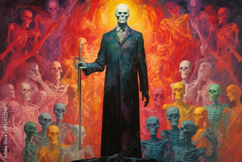 © Sidewaypics, Naklejka premium A ruthless and calculating necromancer, raising armies of the undead to do their bidding. - Generative AI