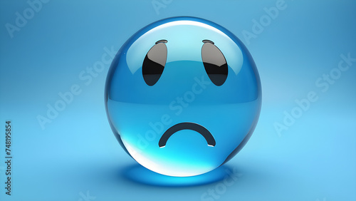© Udayakumar, Fototapeta premium a sad emoji on blue background. face with eyes