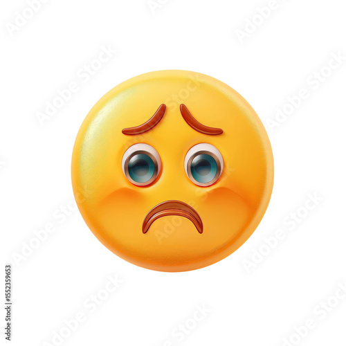 Fototapeta premium A sad yellow emoji with large blue eyes and a frowning mouth, conveying deep...