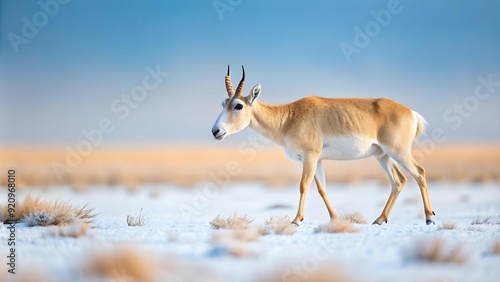 © BOXS, Fototapeta premium A Saiga Antelope Strolls Through a Winter Wonderland generative AI