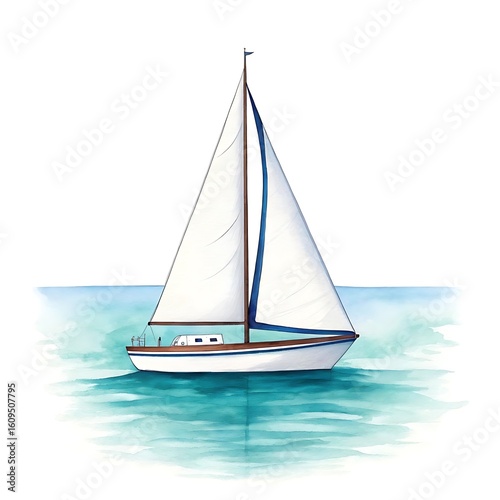 Fototapeta premium A sailboat glides across the tranquil blue water