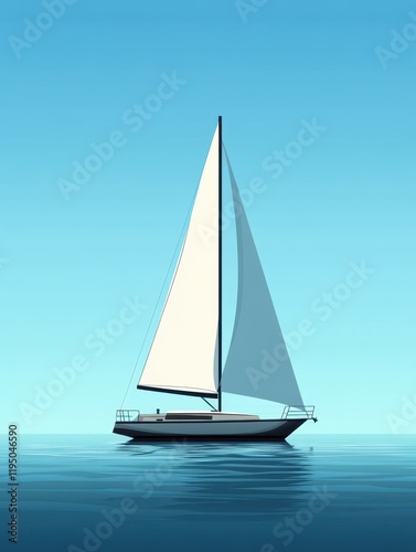 Fototapeta premium A sailboat gracefully glides over tranquil waters, the sun shining brightly and a clear blue sky overhead, creating a perfect midday scene