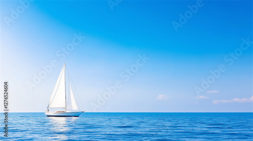 © Vasili, Obraz premium A sailboat sailing on the ocean with bright blue skies above and clear water below, symbolizing freedom and adventure. Copy space available.