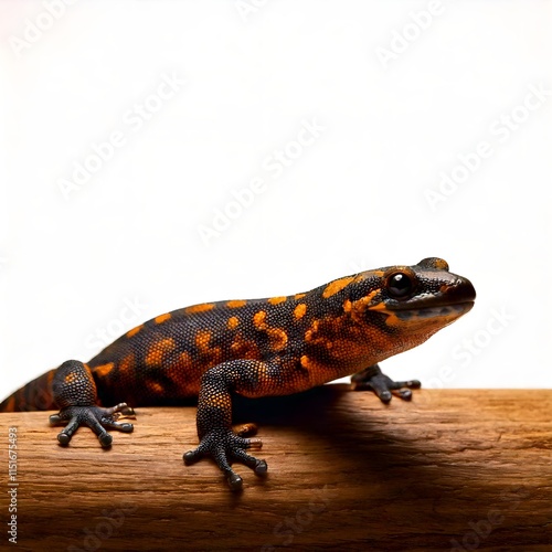 Fototapeta premium A salamander placed on a white background and highlighting its smooth,...